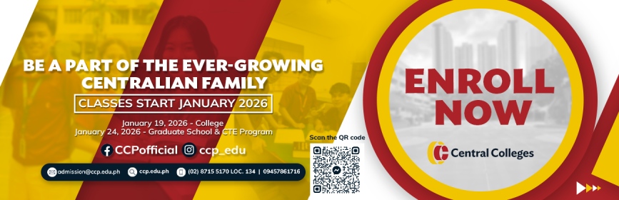 The Central Colleges of the Philippines (Filipino: Kolehiyong Sentral ng Pilipinas) also known as (CCP) is a coeducational educational institution located in Dona Imelda, Quezon City, Metro Manila, Philippines. Formerly known as the Polytechnic Colleges of the Philippines, CCP was established on January 18, 1954.